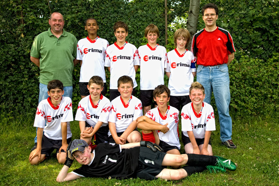 Für unsere D11 spielten Tobias Heldmann (Tor), Nadine Kerz, Julian Lexa, Jan-Philipp Klinger, Sebastian Stolper, Tim Friedrich, Christian Baumann, Christian Neuberger und Kevin Amann. Trainer: Angelo Reeg und Lothar Beilstein.