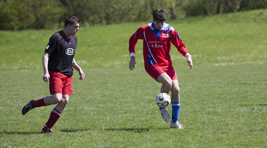 Das Bild zeigt den dreifachen Torschützen Martin Didion (rechts) am Ball.