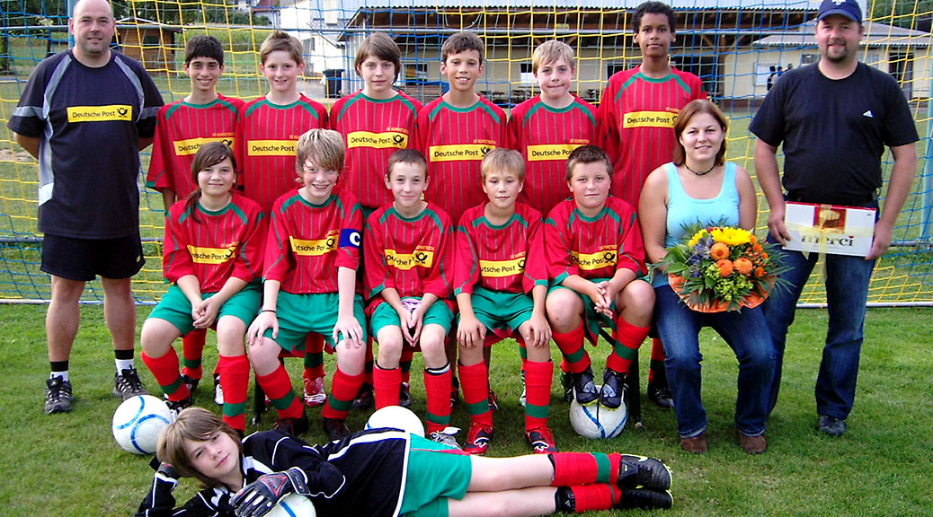 Das Bild zeigt die D11-Junioren der JSG Brensbach/Nieder-Kainsbach/Hummetroth am 3. September 2009 mit stehend von links: Thomas Gunkel (Jugendleiter SV Hummetroth und Trainer der D11), Fabio Capone, Jonas Hornung, Nadine Kerz, Marc Schönleber, Louis Gunkel, Marco Dümmler und Sponsor Markus Schneider. Sitzend von links: Bianca Göttmann, Lukas Orth, Sascha Schantz, Fabian Ramge, Maximilian Frank und Sponsorin Katrin Tymkiw. Vorne liegend: Jonas Hillebrand. Auf dem Bild fehlen Simon Schaffnit, Dennis Sitzmann, Lukas Kaffenberger, Marvin Burk und Tim Bednarz.