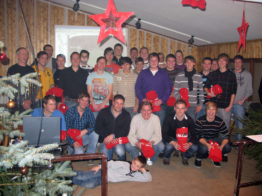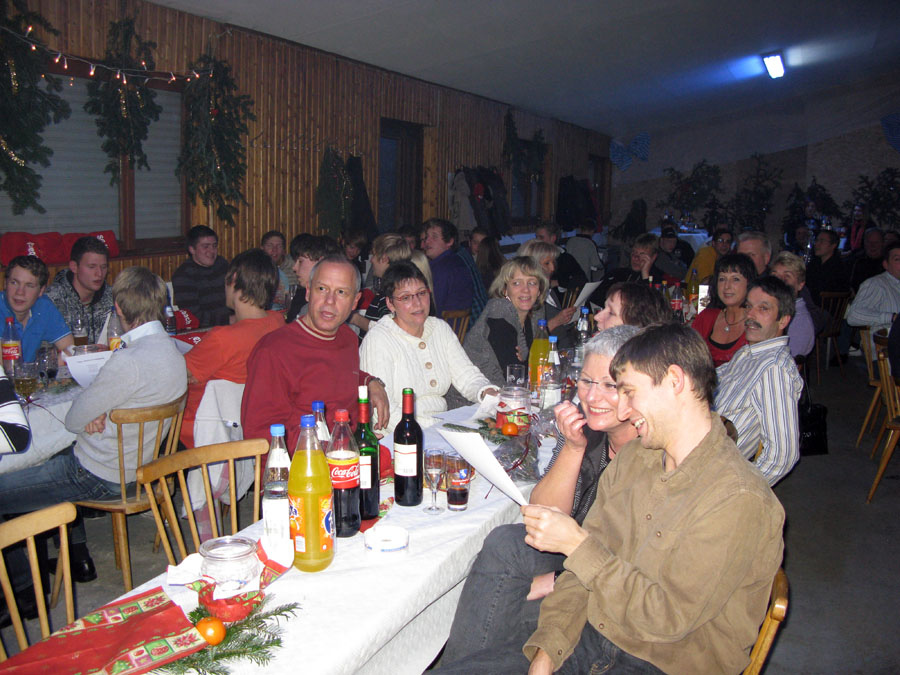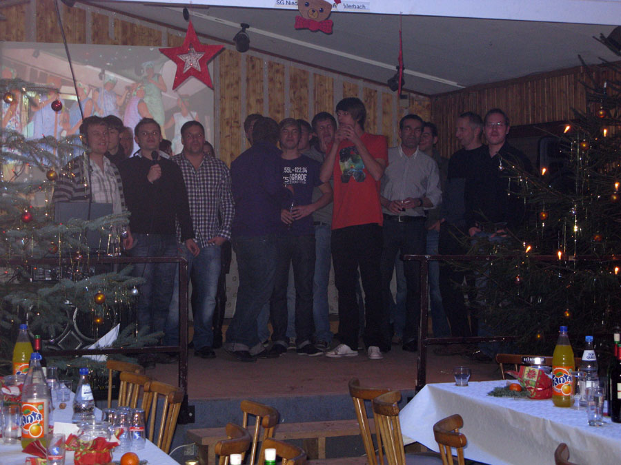 In der festlich geschmückten Halle im Vereinsheim feierte die SG den Abschluss des Jahres 2009 in einem stimmungsvollen Rahmen. Nach Begrüßung und gemeinsamem Essen blickte Jürgen Abraham auf das vergangene Jahr zurück und ehrte Aktive und ehrenamtlich Tätige mit einem kleinen Präsent.