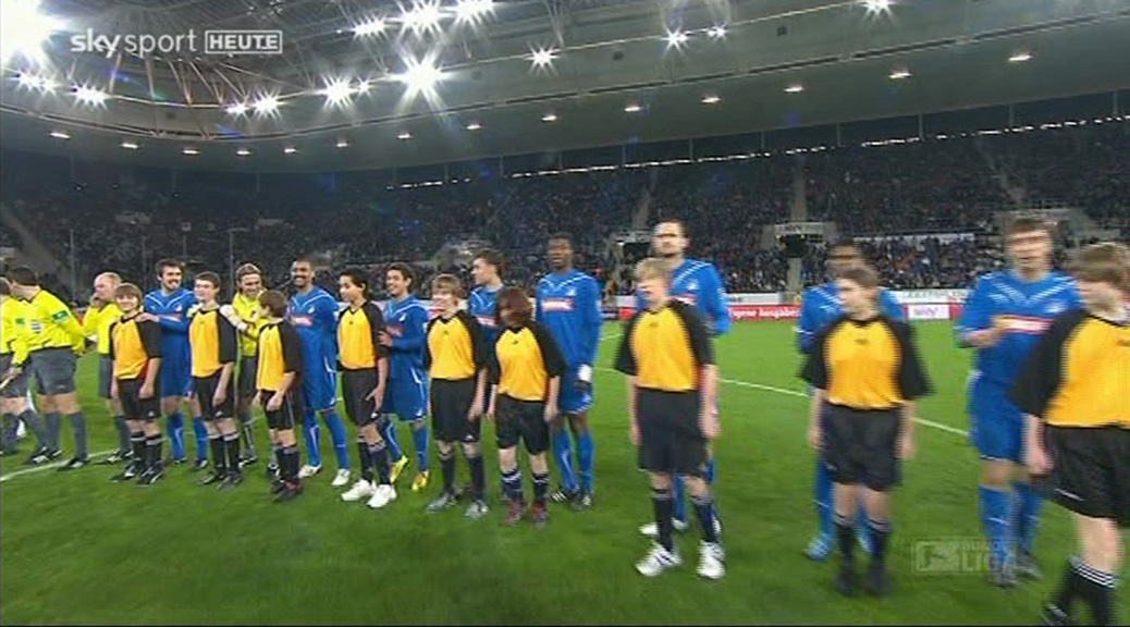 Sekunden später stehen die 22 Spielerinnen und Spieler der JSG Brensbach/Nieder-Kainsbach/Hummetroth in der Mitte der ausverkauften Rhein-Neckar-Arena und blicken in ein Meer von blauweißen Fahnen, während ein gigantisches Blitzlichtgewitter auf sie herniedergeht. Vereinzelt aufblitzende Feuerwerkskörper nehmen nur kurz ihre Sinne in Anspruch, denn noch sind sie an der Hand der Profis von der TSG Hoffenheim und der Borussia aus Mönchengladbach. Stolz stehen sie neben den Bundesligastars, die sie bisher nur aus Fernsehberichten kannten und genießen die Aufmerksamkeit, die ihnen zuteil wird. Denn alle Fernsehkameras sind in diesen kurzen Minuten der Glückseligkeit auch auf sie gerichtet und trotz ihres jugendlichen Alters sind sie sich wohl bewusst, dass der eine oder andere nun ebenfalls bundesweit über die Bildschirme flimmern könnte.