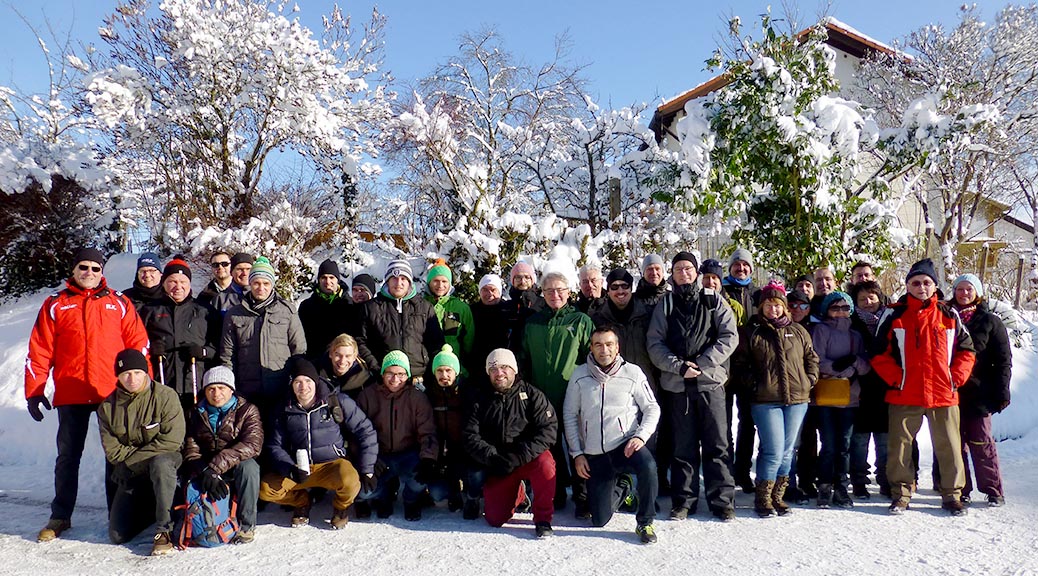 Regelrechtes Bilderbuchwetter mit Sonnenschein und blauem Himmel zog mehr als 40 Wanderer zu einem Ausflug in den tiefverschneiten Buchwald an, zu dem die Alten Herren der SG eingeladen hatten.